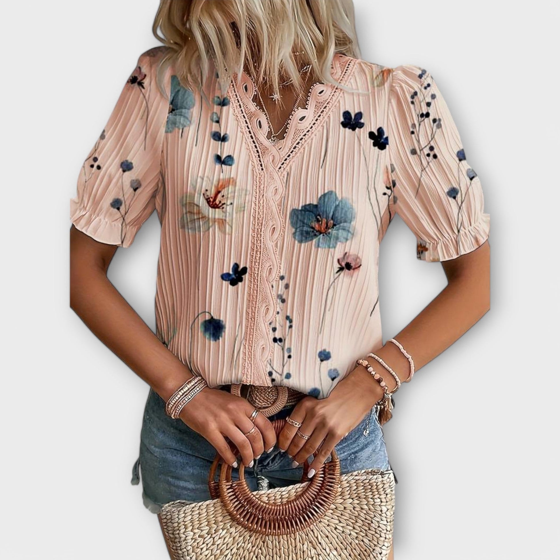 Vervollständigen Sie Ihre Garderobe mit dieser zeitlosen Bluse – eine Bluse mit einem V-Ausschnitt, die perfekt für den Frühling geeignet ist. Der elegante V-Ausschnitt verleiht einen raffinierten Akzent und betont charmant Ihr Dekolleté. Das leichte, atmungsaktive Material sorgt für Komfort, während die lockere Passform eine lässige Eleganz verleiht. Mit diesem Stück werden Sie immer stilvoll gekleidet sein, voller ruhigem Selbstvertrauen und Anmut.